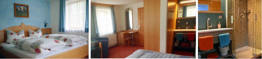 und ein 2-4 Bettzimmer für Familien, ebenfalls mit Dusche/WC.