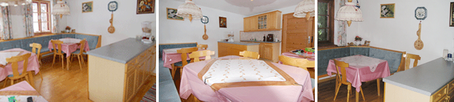 Der gemütliche Frühstücks- und Aufenthaltsraum liegt im Erdgeschoss. Für unsere Gäste ist ein kleiner Küchenblock, ausgestattet mit Kühlschrank, Kaffeemaschine, Wasserkocher, ausreichend Geschirr und Spülbecken, vorhanden. Somit können Sie sich abends eine Brotzeit machen, wenn Sie nicht mehr außer Haus möchten. Der Fernseher mit SAT-TV kann gerne von unseren Gästen genutzt werden. Auf Wunsch stellen wir Ihnen auch unseren Gasgrill im Garten zur Verfügung.